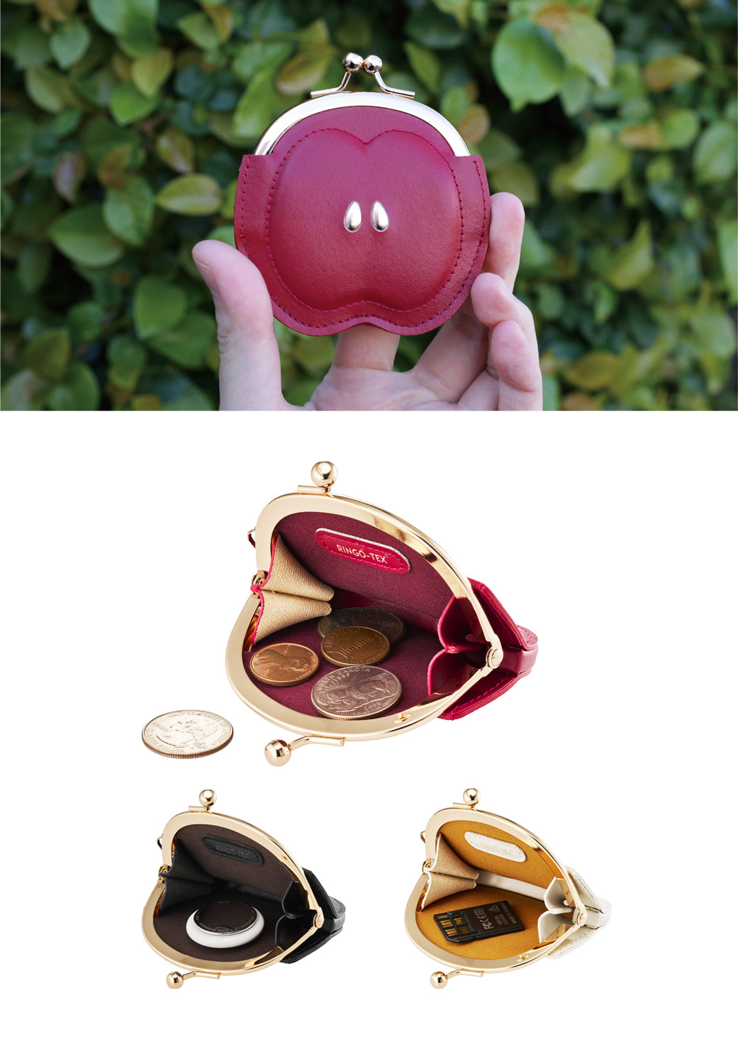 りんごがま口 ワインレッド